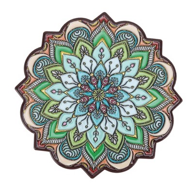 Earth Rugs Round Flower Power Coaster – 7"x7" Braided Jute, Colorful Boho Style, Eco-Friendly Table Decor