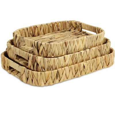 Hastings Home 14-Inch Woven Seagrass Wicker Staircase Basket with Handles