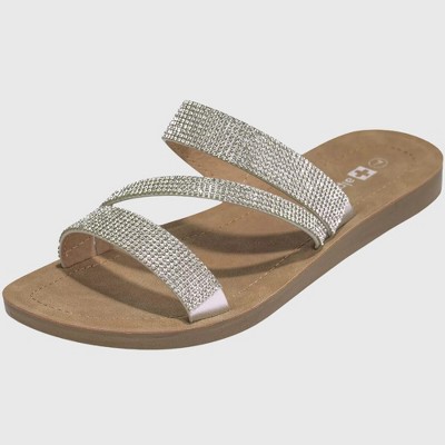 Alpine Swiss Womens Rhinestone Slide Sandals Dressy Summer Strappy Flat Shoes