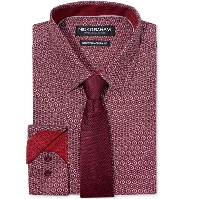 Nick Graham Mens Slim Stipple Circle Tie Set Button Down Dress Shirt