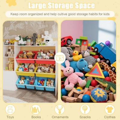 Kids Toy Storage Organizer with 5-Section Cubby Bookshelf, Wooden Cabinet for Playroom & Nursery