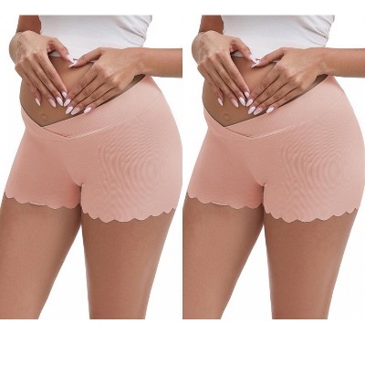 INSPIRE CHIC Women's Ice Silk Anti-Chafing Maternity Mid Rise Tummy Support Lightweight No Trace Panties 2 Packs
