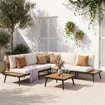 LAUSAINT HOME 6 Pieces Metal Conversation Sofa Set with Coffee Top Table, Outdoor Sectional Patio Furniture Set