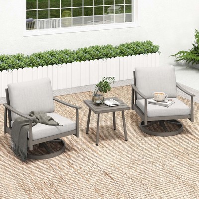 HAPPATIO Patio Bistro Set Outdoor,3 Pieces Patio Aluminum Conversation Set, Swivel Chairs and Side Table for Garden Pool Lawn