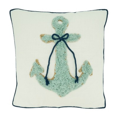 Saro Lifestyle Saro Lifestyle Throw Pillow Cover With Anchor Appliqué Design, Blue, 18"