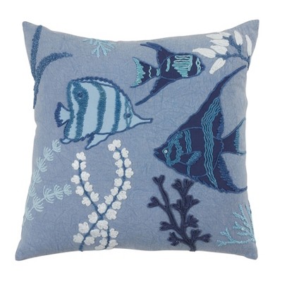 Saro Lifestyle Stonewashed Fish Decorative Pillow Cover, Blue, 20"