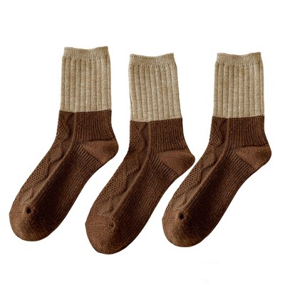 Anna-Kaci 3-Pair Plush Home Socks Striped Panda Design Cozy Crew Style for Everyday Comfort