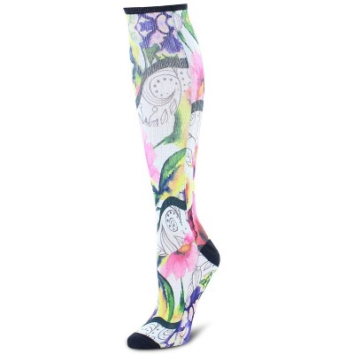 Muk Luks Women's 6 Pack Nylon Compression Knee-High Socks, Ebony/Burgundy/Blue