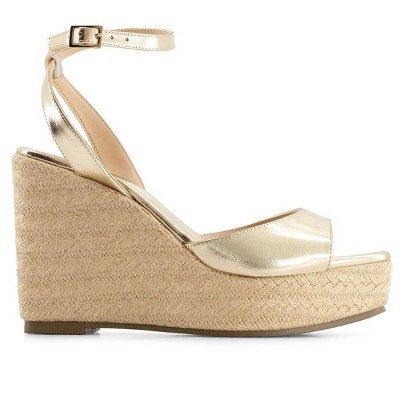 Perphy Women's Platform Espadrilles Closed Toe Buckle Strap Wedges Heel Sandals