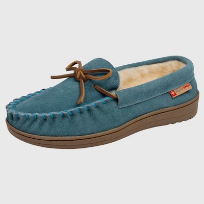 Alpine Swiss Sabine Womens Moccasin Slippers Genuine Suede House Shoe Memory Foam Insole Plush Faux Shearling Fur Indoor Outdoor Anti-Slip Rubber Sole