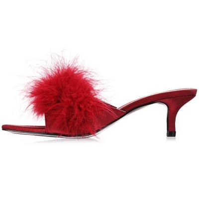 Memoi Women's Mona Marabou Hard Sole Slender Heel Slipper