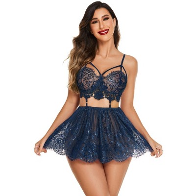 Avidlove Lace Lingerie for Woman Mesh Babydoll Lingeries Baby Doll Sleepwear Lace Chemise Boudoir Outfits