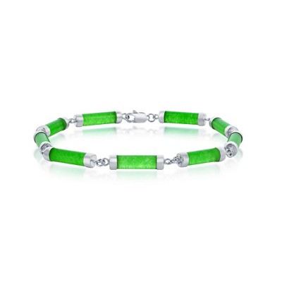 Bella Silver Sterling Silver Jade Cylinder Link Bracelet - Green - 7.5 Inch