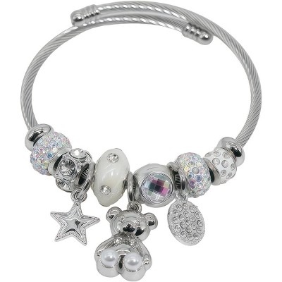 Silver Women Bracelets - Adjustable Charm Bracelets Titanium Steel Bracelet Bundle Jewelry