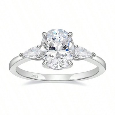 Sterling Silver 3 - Stone Oval Engagement Rings for Her Size 6