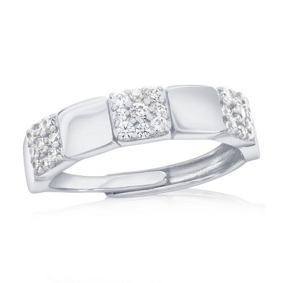 Bella Silver Sterling Silver, Square Polished & Pave CZ Half Eternity Ring - Available Sizes: 9 , 8 , 6 , 7