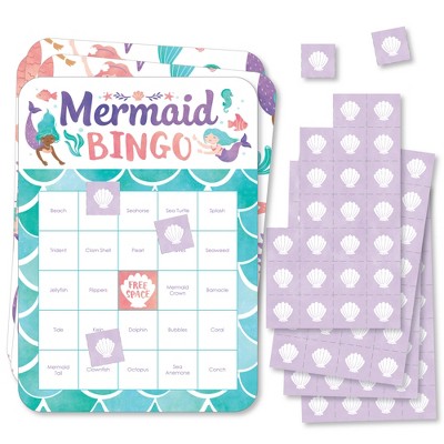 Big Dot of Happiness Mermaid Bingo Cards and Markers, Mermaid Birthday Party Bingo Game Activity for Kids - Set of 18