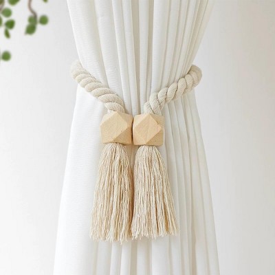 Acoinel Rustic Braided Rope Magnetic Wooden Ball Curtain Tieback - Boho Farmhouse Window Decor