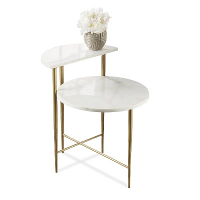 Contemporary Metal and Marble Geometric Accent Table White - Olivia & May: Elegant Iron Top, No Assembly Required