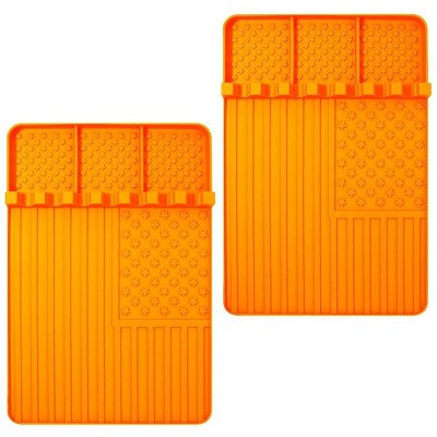Aoibox 2 Pack Silicone Griddle Tools Mat 15.5 x 10.5 in Large BBQ Utensil Holder with 7 Slots Drip Pad for Kitchen Grill Countertop Orange