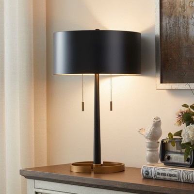 NATYSWAN Modern Table Lamps for Living Room,24in Black Metal Nightstand Lamp with Dual Pull Chain Switch for Bedroom Office