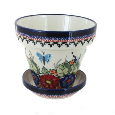 Blue Rose Polish Pottery 890-893 Zaklady Small Flower Pot