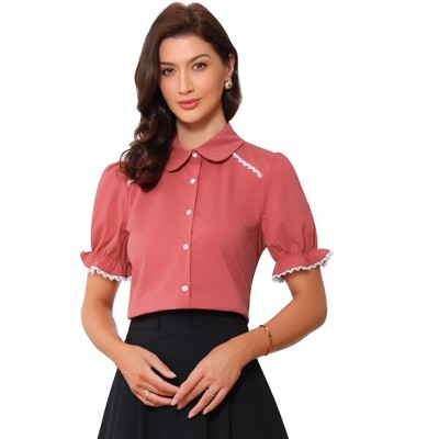 Allegra K Women's Vintage Short Sleeve Peter Pan Collar Button Down Shirt