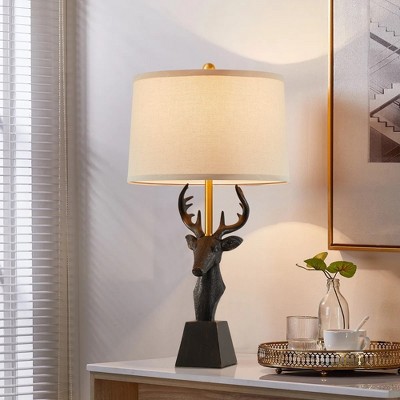 NATYSWAN 29in Modern Table Lamp, Deer Head Design Black Resin Bedside Lamp for Bedroom Living Room, Rotary Switch