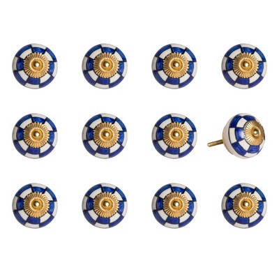 HomeRoots Set of Eight Blue And Gray Ceramic And Metal Drawer Pull Knobs