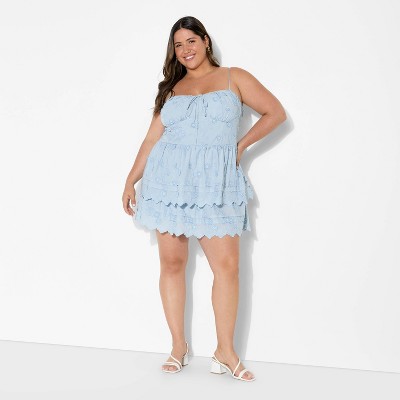 Women's Embroidered Mini A-Line Dress - Wild Fable™ Light Blue