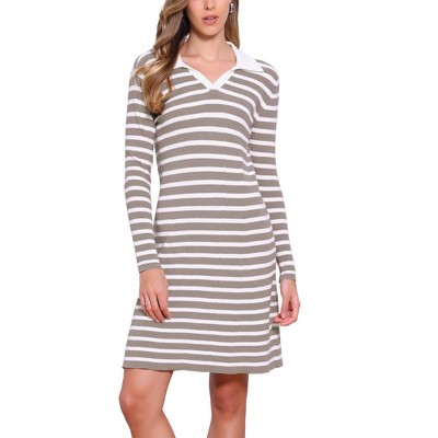 INSPIRE CHIC Women's Casual Long Sleeve Striped V Neck A-Line Ribbed Knit Mini Sweater Dresses