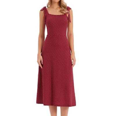 INSPIRE CHIC Women's Polka Dots Tie Shoulder Sleeveless A-Line Elegant Maxi Dresses