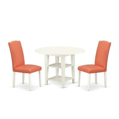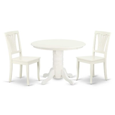 Round Dining Set 3pc - 42 Inch Table & 2 Chairs - Linen White Kitchen Dinette Set
