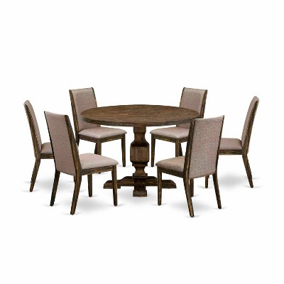 Medieval Round Dining Set - 42 Inch Table & 2 Parsons Chairs - Black Finish - Linen Fabric