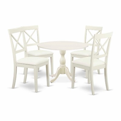 HomeStock 5-Piece Linen White Finish Solid Wood Top Dining Table with 4-Parson Chair with Drop Leaf