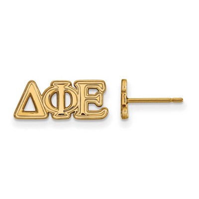 Black Bow Jewelry 14k Yellow Gold Plated Sterling Silver Delta Phi Epsilon Greek Life Letters Extra Small Stud Earrings