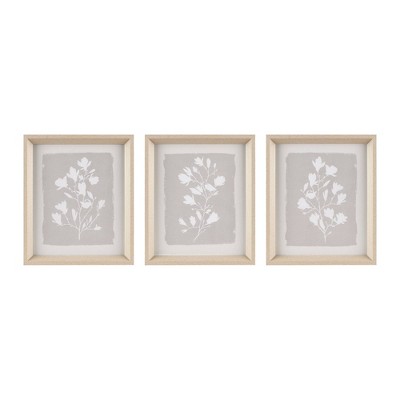 3pc Fair Florets Framed Glass Wall Art Set Beige - Madison Park: Modern Botanical Decor, MDF & Polyethylene