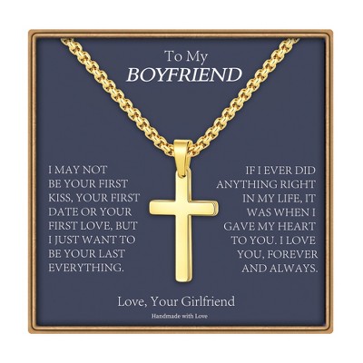 Turandoss Cross Necklace for Men Boys, Gold Silver Black Cross Pendant Necklace, Fathers Day Gifts for Men Boys Husband, Birthday Gifts for Son, 20In