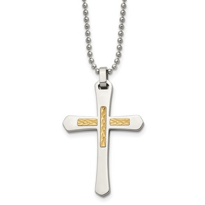 Black Bow Jewelry Stainless Steel & 14k Yellow Gold Accent D/C Cross Necklace, 24 Inch