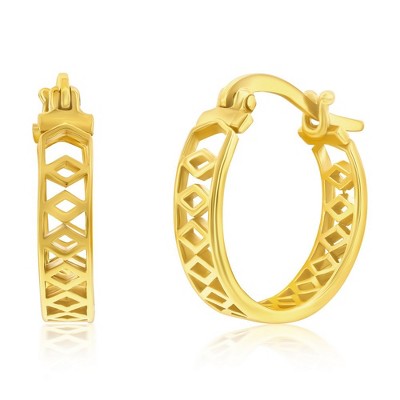 Bella Silver Sterling Silver Diamond Design Hoop Earrings - Gold Plated - Gold