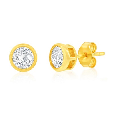 Bella Silver Sterling Silver, 6mm Round Bezel-Set Studs - Gold Plated - Gold