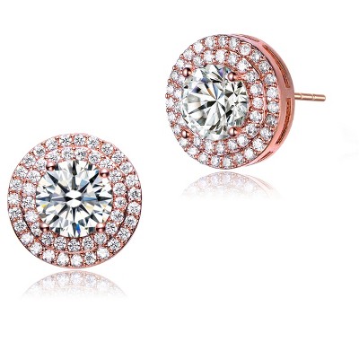 Guili Round Stud Earrings in Sterling Silver with CZ and Morganite Stones, in Silver or Rose Gold – Subtle Glam for Everyday Elegance