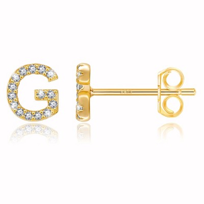 Turandoss 18K Gold Initial Stud Earrings for Women Girls - S925 Sterling Silver Post Diamond Flat Back Earring Hypoallergenic, Christmas Gifts for Her