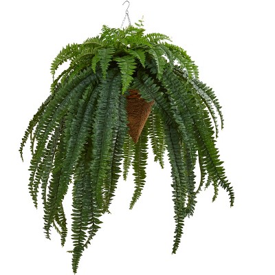 Nearly Natural 50-in Giant Boston Fern Artificial Plant in Hanging Cone