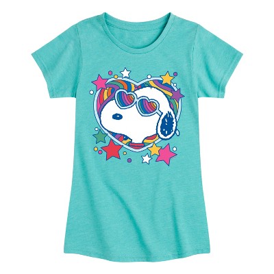 Girls' - Peanuts - Snoopy Rainbow Heart Fitted Short Sleeve Graphic T-Shirt