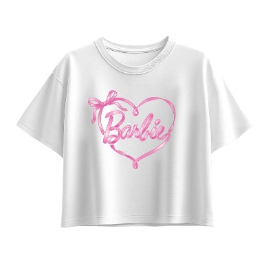 Girls' - Barbie - Bow Ribbon Heart Short Sleeve Boxy Graphic T-Shirt
