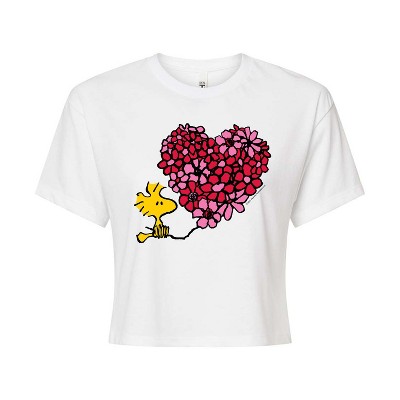 Women's - Peanuts - Snoopy Woodstock Airbrush Heart Cropped Graphic T-Shirt