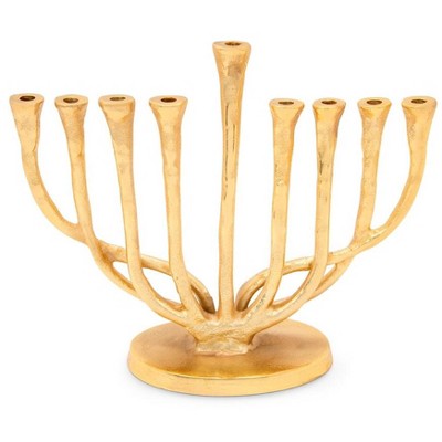 Nambé Classic Menorah – 14-Inch Silver-Plated Alloy Candle Holder on Acacia Wood Base, Mid-Century Modern Hanukkiah for Celebrations