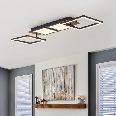 Rennnsan Caldra 31" W - 39" W Rectangle Wooden Farmhouse LED Dimmable Flush Mount in Sharp Corner