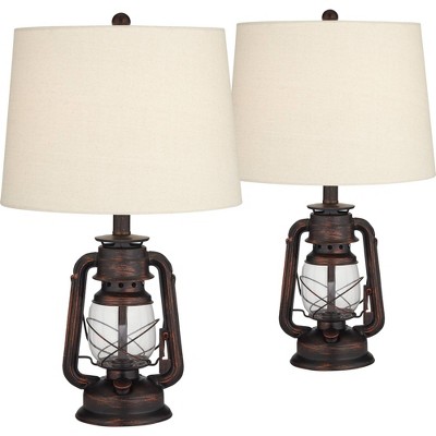 Oumilen Small Desk Lamp, Black Metal Cage Shade with USB Port, Set of 2